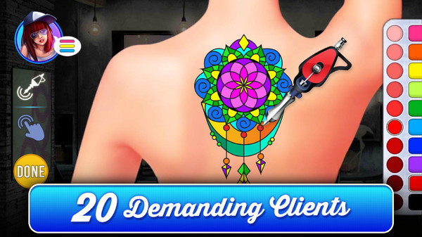 我纹身贼6游戏是一款非常有趣的模拟类游戏,作为一名著名的纹身大师,你需要为每一个前来纹身的顾客们提供最好的服务,根据顾客的需求为顾客定制各种美丽的纹身图案,一款模拟纹身类型的游戏。玩家将在游戏中成为一名纹身大师,你需要根据顾客的需求,为你的顾客量身定做各种美丽的纹身图案,让你的顾客满怀期待的进店,满心喜悦的离开。