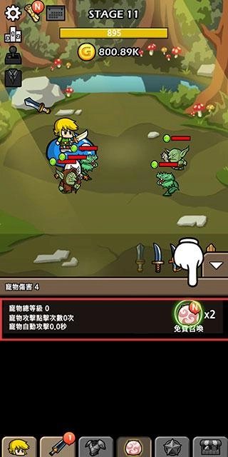 1、在【STAGE11】的战斗过程中,点击魔物可以获取金币,使用这些金币购买自动攻击类武器,能够提升【BladeCrafter2】的战斗效率。