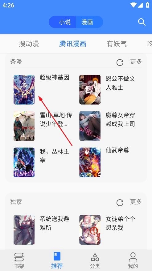 3.选择好后,然后点击你想看的漫画即可。