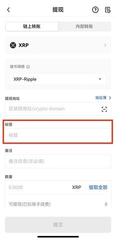 注意填写带有标签的币种的提现地址和标签,如XRP。