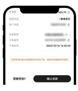 2、买家付款后,请您仔细核实,确认款项到账后请务必点击【确认收款】,才能放币给买家,交易顺利完成。