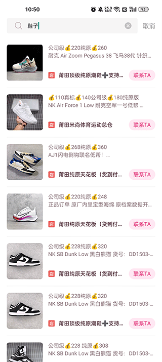 莆田曾是耐克的代工厂,因此其生产的鞋子质量上乘,一直备受追捧。如果你打算购买莆田鞋,不妨试试莆田鞋批发app。这是一款专注于潮流鞋款采购的手机购物平台,汇集了各种风格的鞋子,种类繁多,无论是个人用户还是批发商,都能找到满意的商品。使用这款软件非常便捷,只需根据需要一键下单即可完成采购。通过该应用,用户可以随时查看最新的潮鞋资讯和市场价格,帮助批发商提前掌握市场动态,抢占商机。值得一提的是,莆田鞋批发app整合了全国范围内的厂家一手货源资源,是微商和实体店常用的找货工具,每年都会拒绝10万家炒货行为的商家加入,确保没有中间环节的一手货源供应。无论你是个人买家还是商户,都可以在这里以最实惠的价格买到心仪的商品。感兴趣的用户可以在本站下载体验。