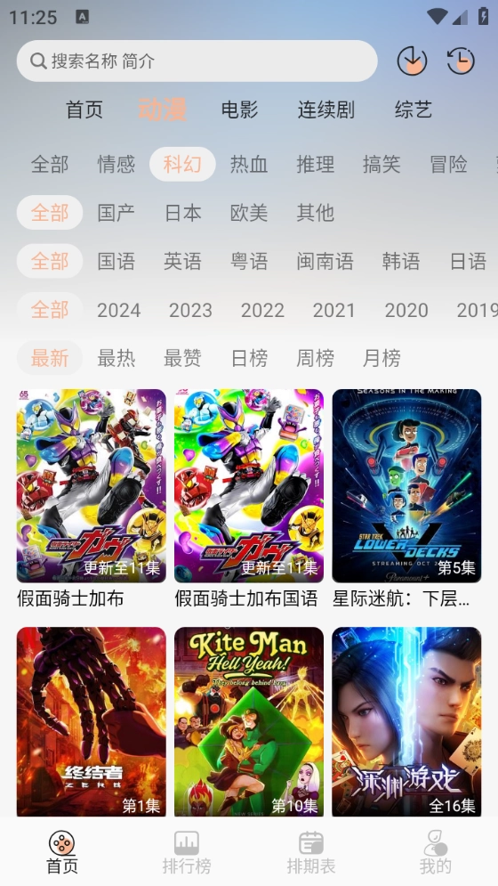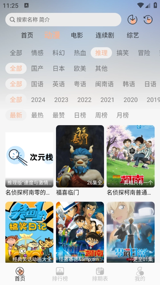 进入首页后,这里主要提供动漫资源,同时也涵盖了电视剧、电影以及综艺内容。