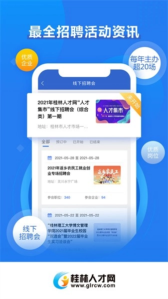 新添简历智能诊断功能,加快了职位搜索的响应速度;解决了部分机型的兼容性问题,增强了消息推送的稳定性;同时更新了桂林近期大型招聘会的相关信息。